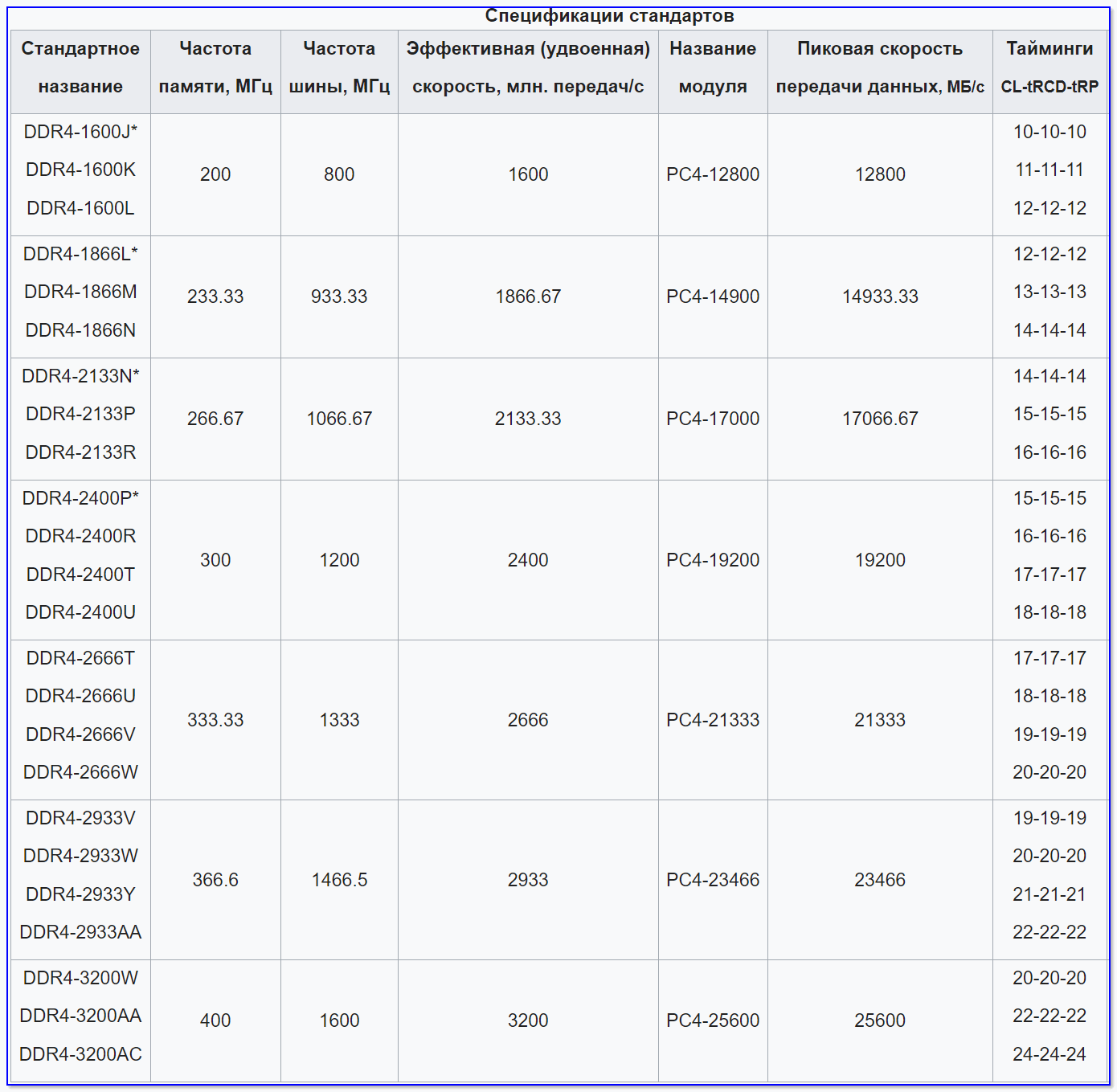 Кстати, при помощи таблицы ниже, вы можете перевести обозначение PC3-12800 — в стандартное название — DDR3-1600 (что кстати, также порой указывается на планках ОЗУ).