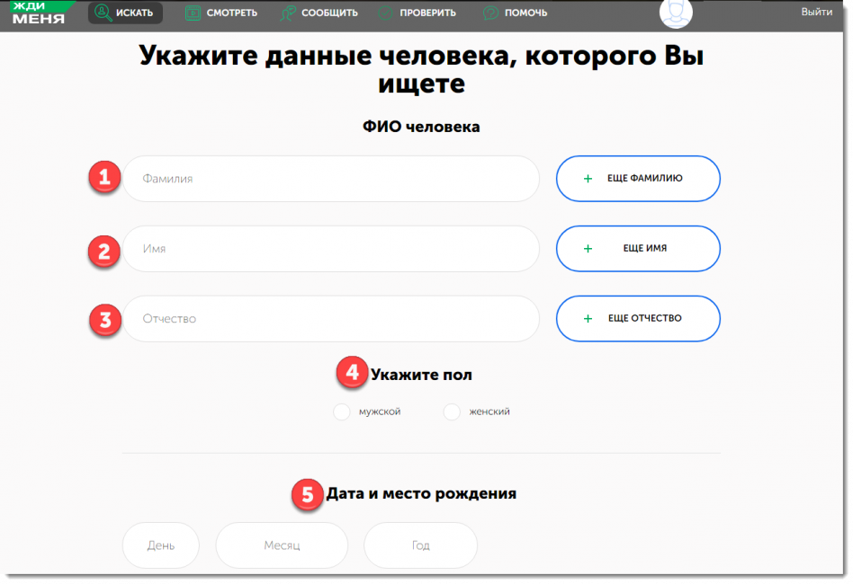 Шаг 2 Заполнить анкету человека, которого необходимо найти.