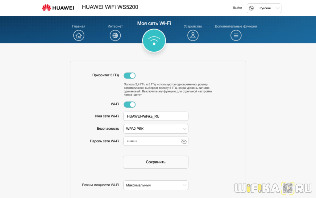 Теперь переходим к детальной настройке WiFi сети Huawei или Honor. Казалось бы, эти параметры должны открываться в меню «Моя сеть Wi-Fi». Однако здесь мы видим только те же самые конфигурации, которые были в пошаговом мастере.