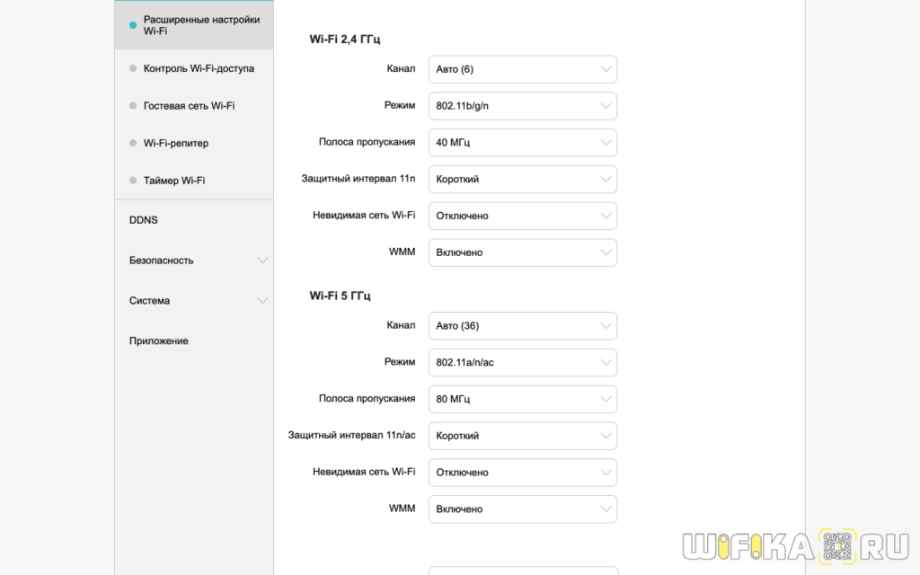 Более детальная настройка беспроводного сигнала производится в рубрике «Дополнительные функции — Расширенные настройки Wi-Fi»