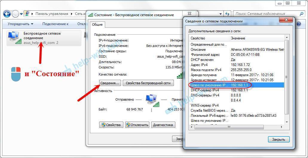 Затем необходимо щелкнуть по кнопке “Сведения”: в пункте “Шлюз” будет искомый адрес. Его и введите в адресную строку браузера.