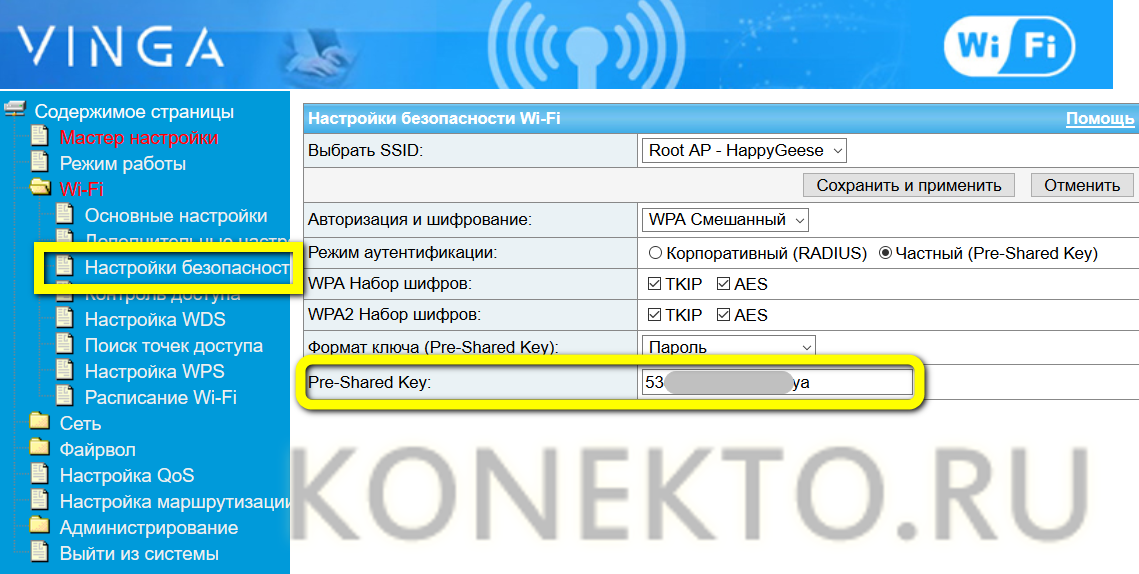 Принцип поиска кода от вайфая в настройках роутеров от других производителей в целом такой же; главное — найти раздел «Безопасность». Для сравнения — на моделях TP-Link узнать пароль от Wi-Fi можно следующим способом: