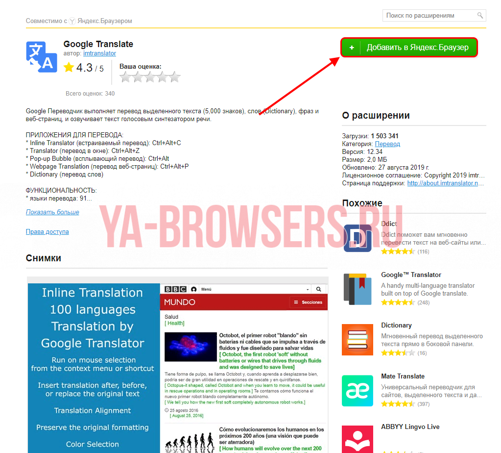 Расширения-переводчики для Яндекс браузера