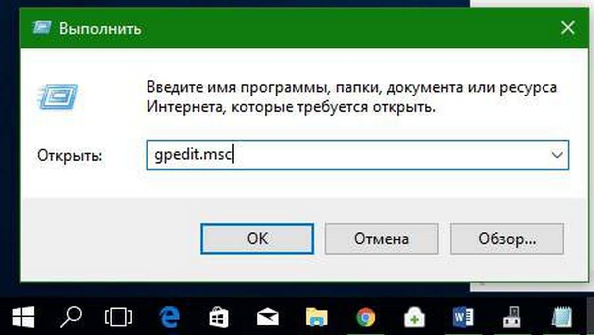 - в появившемся окне «Выполнить» введите команду gpedit.msc и нажмите OK.