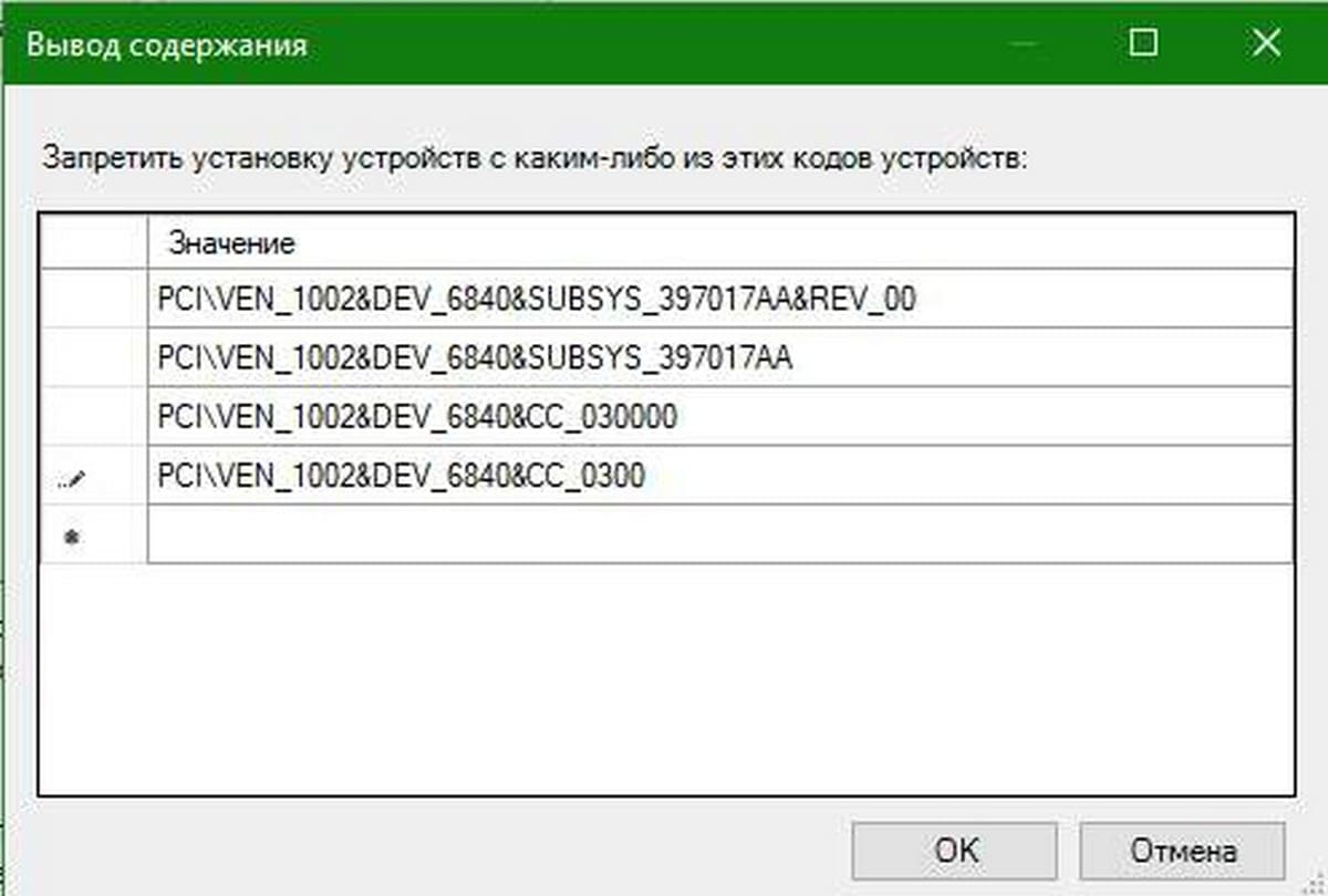 После того, как данные заполнены, нажмите на кнопку «ОК», чтобы сохранить изменения. В будущем, если у вас есть другие аппаратные устройства, для которых вы хотите остановить или запретить обновления драйверов, просто добавьте новые идентификаторы аппаратных устройств в том же порядке.
