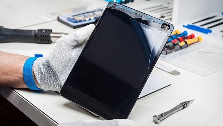 Повреждение экрана – это другая распространенная ситуация, обычно сопровождается падением. Здесь может сломаться сама матрица, при этом механических повреждений может не быть. Обычно свидетельствует о проблеме то, что планшет включается, но не загружается, при этом никаких отображений на экране нет. Конечно, причиной могут быть механические травмы, но тогда это очевидно, ведь на экране есть соответствующие повреждения. Иногда при падении не на экран, он может не пострадать, но не запускаться.