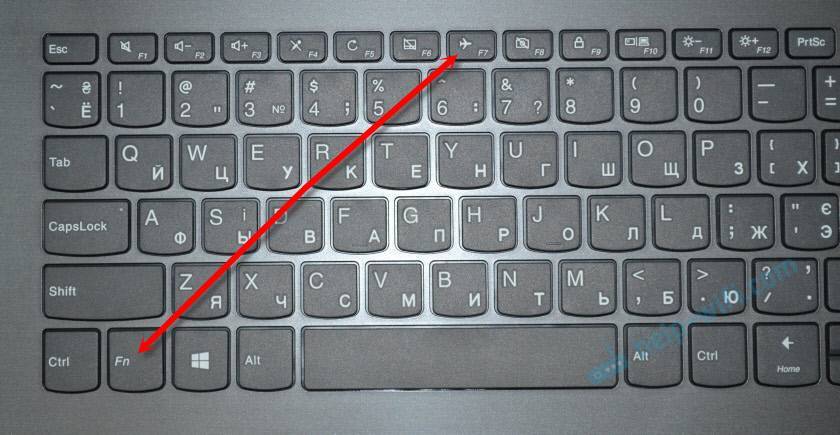 Сочетание клавиши Fn на ноутбуке Lenovo для включения Wi-Fi