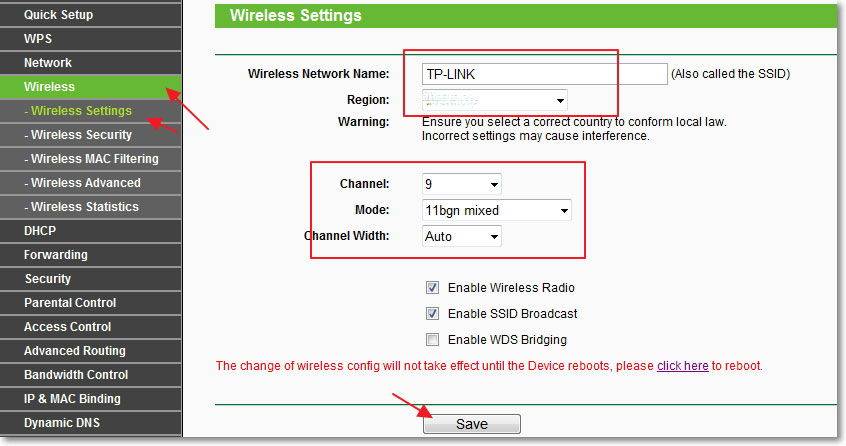 Возможен и второй метод запаролить роутер TP-Link. В веб-интерфейсе маршрутизатора имеется специальная страница конфигурации беспроводной сети. Можно напрямую перейти туда и установить кодовое слово.