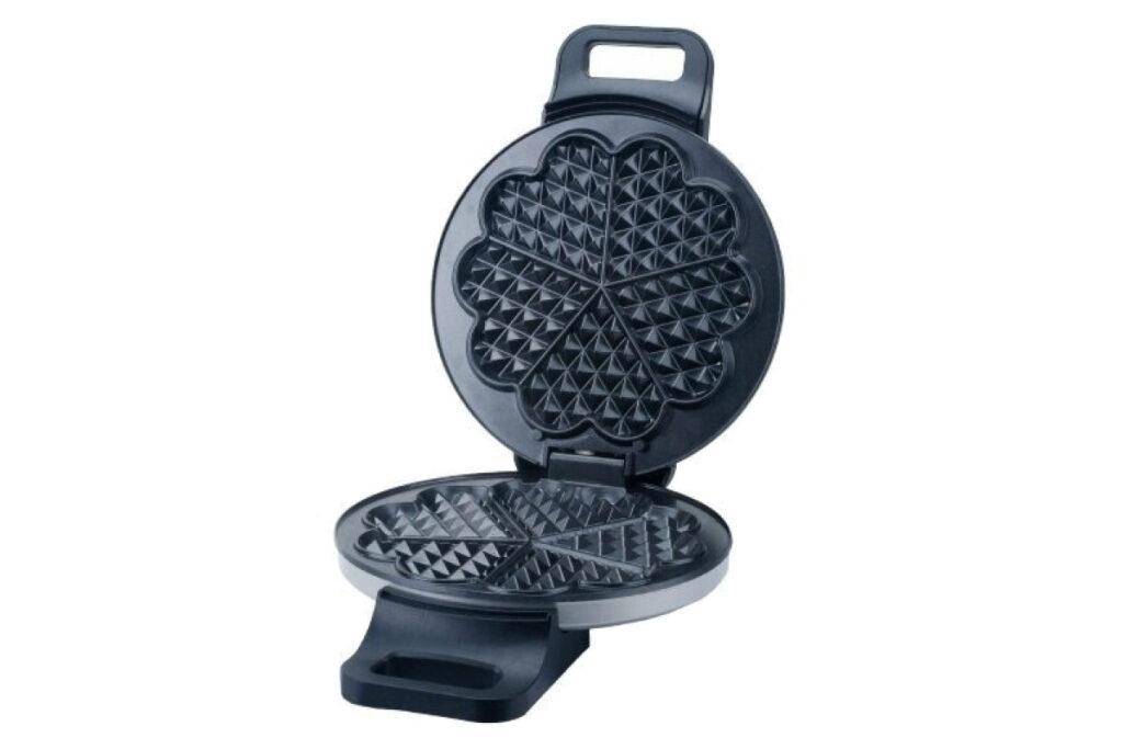 Корпус снаружи выполнен из теплоизолированного пластика, рабочая зона внутри – металл с антипригарным покрытием. За один раз можно приготовить 5 порций в форме сердечка. Показатель мощности – 1000 Вт, он гарантирует быстрый нагрев, равномерное выпекание. Размеры 26×26×10 см при весе 1.4 кг.