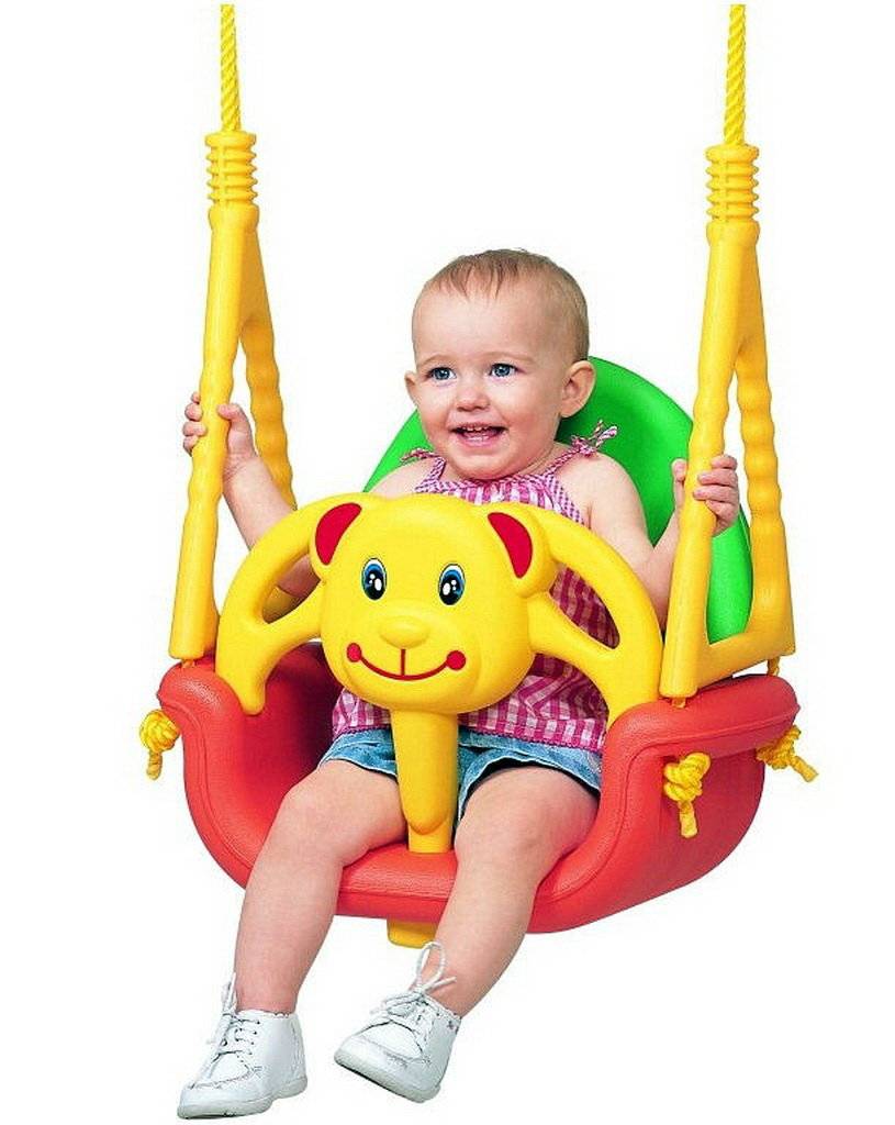 Для ребят 2-3 лет отличный вариант – напольные качалки, на которых малыш сидит с прямой спиной и раскачивается вперед – назад. Их часто делают в форме сказочных животных или птиц. Такая качалка хороша тем, что малыш может залезать, слезать и раскачиваться самостоятельно. Катание все равно должно проходить только под присмотром взрослых.