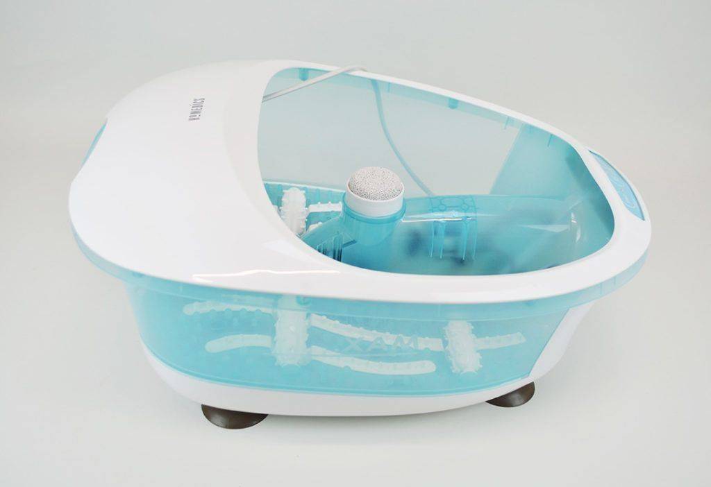 Гидромассажная ванночка с кнопочной системой управления, оснащенная дисплеем, и таймером, позволяющим настраивать время процедуры. Конструкция устройства выполнена из прочного качественного пластика, имеет акупунктурное дно. Обеспечивает два вида массажа – пузырьковый (джакузи) и вибромассаж, которые можно совмещать с роликовым массажем. Средняя цена: 6 450 руб.