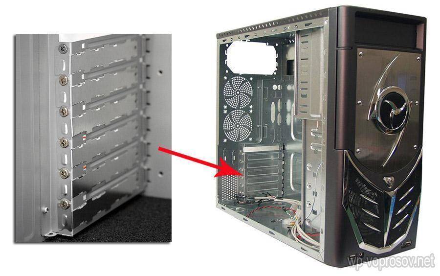 Также в более качественных корпусах для быстроты установки данных комплектующих имеются специальные пластиковые фиксаторы, с помощью которых их легко установить без использования отвертки. В обычном корпусе они крепятся при помощи обычных винтиков.