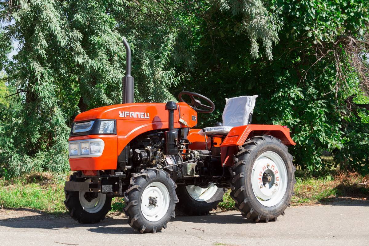 - Уралец 220. Собирают в России, по конструкции напоминает похожие китайские трактора. Двухцилиндровый четырехтактный агрегат выдает 22 л.с., усилие передается на заднюю ось. Компактная и подвижная модель, можно ставить навесное оборудование на заднюю трехточечную навеску. Цена составляет около 350 тысяч.