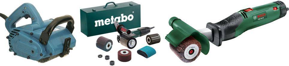 Главным отличием щёточных шлифовальных инструментов в том, что рабочая часть представлена не шлифовальной шкуркой, а щёткой в основном изготовленной из металла. Поэтому такой инструмент для шлифовки или полирования не подойдёт. Её используют для снятия покрытий. Щёточная шлифмашина по дереву предназначена для работы на больших участках, таких, например, как снятие лака с паркета, обновление мебели или других габаритных предметов.