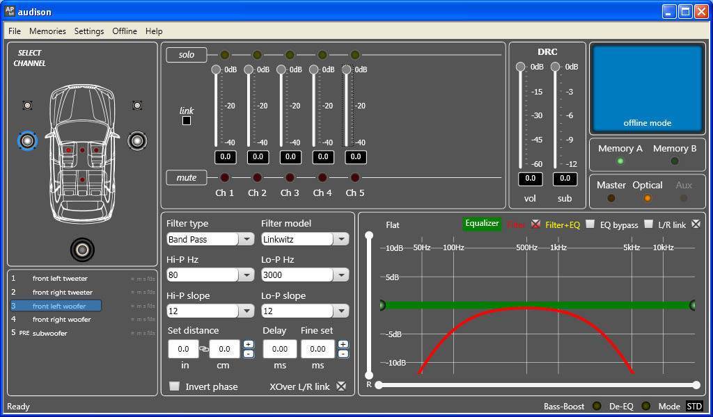 В качестве наглядного примера — итальянский концерн Elettromedia, который давно и довольно успешно разрабатывает тему построения новых систем от штатных головных устройств. Суть процессоров, выпускаемых под брендом Audison, следующая. Вы отключаете штатные динамики и заводите сигнал со штатного усилителя на входы процессора. Настройка происходит так. Включаете диск из комплекта и запускаете в процессоре режим настройки. Процессор «слушает» входы, автоматически «складывает» порезанные на частотные полосы сигналы (в том числе и с учетом фазовых сдвигов), проводит деэквализацию, и вы получаете «восстановленный», как томатный сок из пасты, звуковой сигнал. Алгоритм такого сложения — и есть предмет гордости разработчиков.