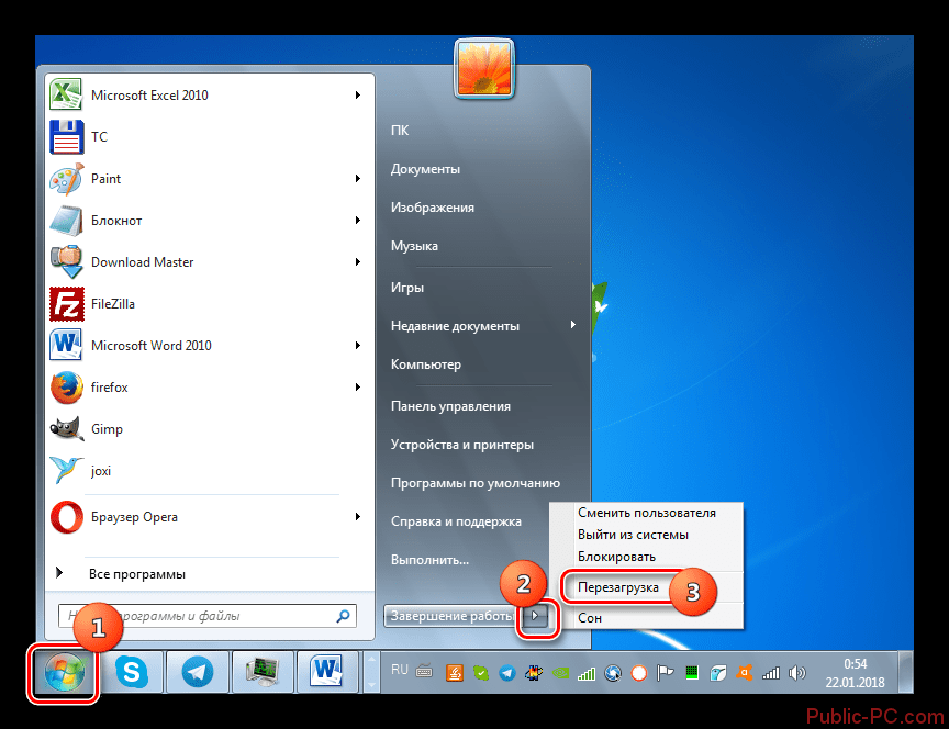 Как перезагрузить ноутбук через клавишу «Пуск»