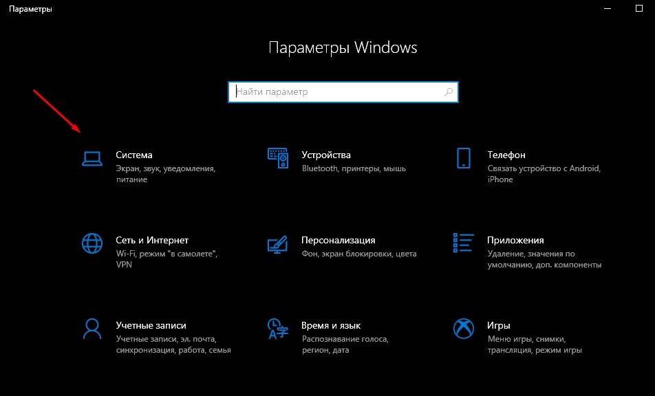 Перейдите в раздел «Система».