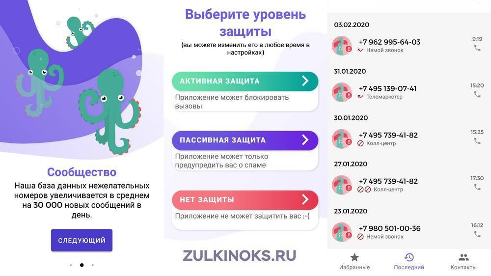 По-русски – «Не бери трубку». «Осьминожка» – одно из лучших приложений для блокировки вызовов, которое защищает вас от неизвестных и скрытых номеров, связанных с телемаркетингом, рекламой и т. д. Три уровня защиты, постоянно обновляющаяся база данных.