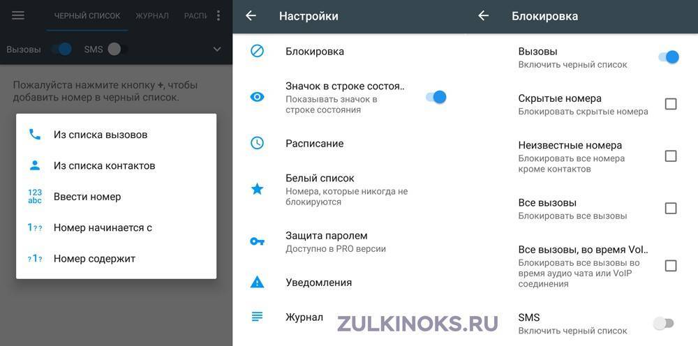 Настройки приложения «Blacklist Plus»