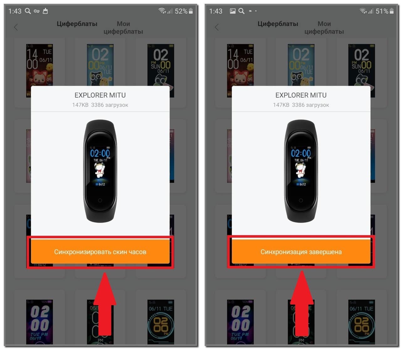Ждем несколько секунд пока циферблат синхронизируется с браслетом.