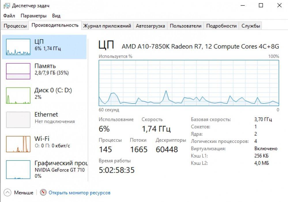 При рассмотрении, какой Виндовс лучше 7 или 10, часто прибегают к проверке удобности диспетчера задач. На десятке эта утилита не только изменилась внешне, но и получила массу полезных функций. В частности, теперь можно выводить различные графики ресурсов, настраивать автозагрузку, а также следить за временем активности системы.