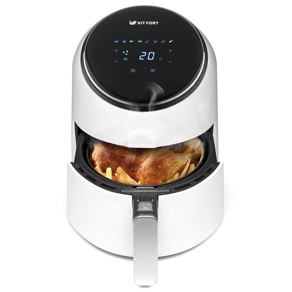 Компактный аэрогриль с чашей на 2,6 л подходит для применения в небольшой семье. Позволяет настраивать температуру и время приготовления блюд, управляется механическим способом. Укомплектован таймером на 60 минут, по завершении обработки продуктов выключается самостоятельно. Среди преимуществ устройства — антипригарное покрытие чаши и возможность ее периодического извлечения из корпуса для перемешивания.