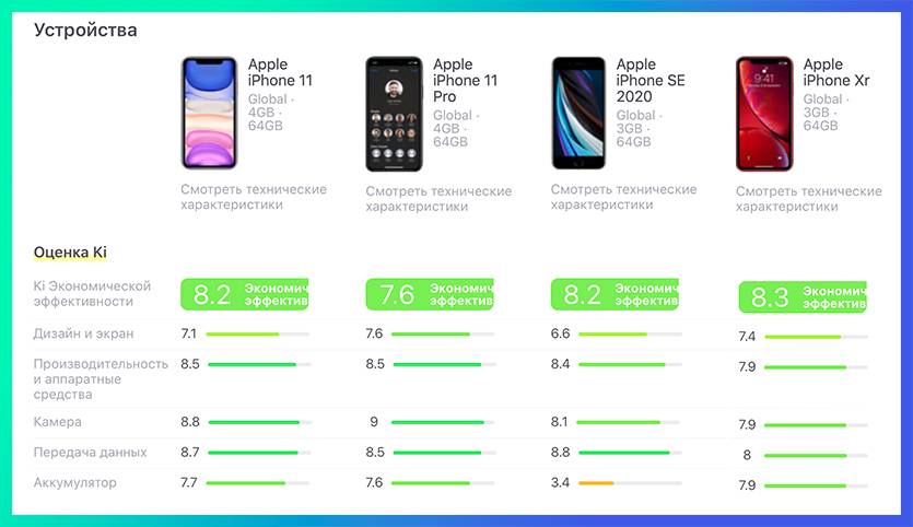 Сравнение цен iPhone 7 и SE 2020 года в виде таблицы: