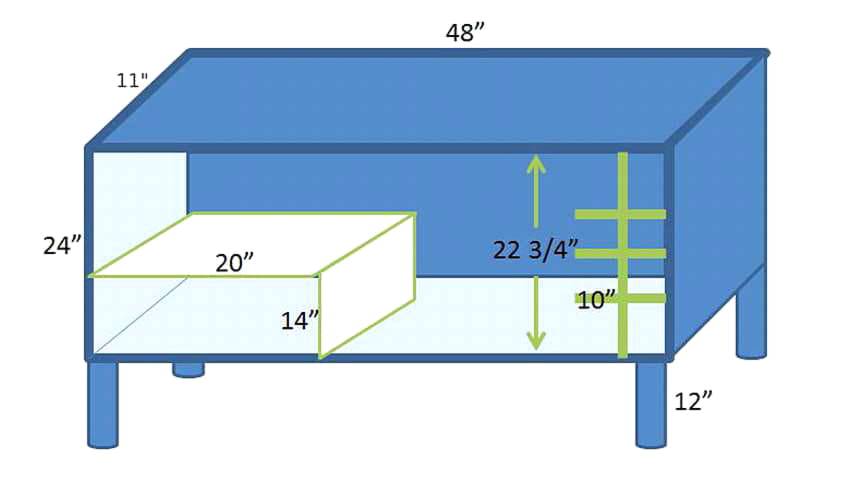 Маленькое пространство комнаты требует творческих решений. Посмотрите пример, как сделать деревянный буфет с винной стойкой своими руками для небольшого помещения. Подробную инструкцию вы можете прочитать на сайте, ссылку найдете под галереей. Хотя суть процесса сборки легко понять по пошаговым фото, где изображены чертежи с размерами, по которым понятно, в какой последовательности необходимо собирать этот симпатичный винный шкаф. Только переведите показатели в дюймах в сантиметры, просто умножив их на 2,54. Например, показанные на чертеже 12 “, это 12*2,54 = 30,48 см.