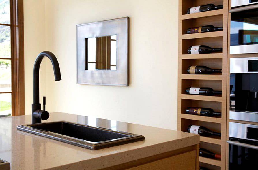 Кстати, встраиваемые модели можно устанавливать не только на кухне: ими можно оборудовать, скажем, барную стойку, остров, шкаф в гостиной (см. фото ниже) или встроить в офисную мебель.