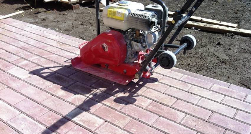 Важно! Для достаточного уплотнения асфальта аппарат должен иметь не меньше 10кН. Плитку лучше укладывать с помощью плиты весом 75-90 кг и усилием 18-20кН