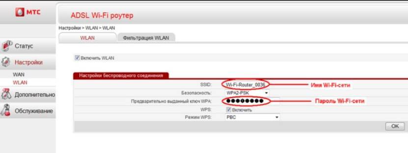 Далее заходим в настройки WLAN и настраиваем наш основной Wi-fi, именно им мы будем пользоваться. Даем ему имя, ставим пароль и жмем «ОК».