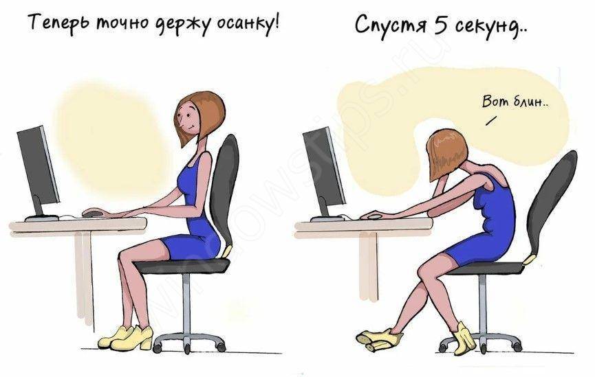 Правильная посадка за компьютером имеет важное значение. Сам экран не должен быть направлен на источники света, будь это окно, лампы, или что-либо другое