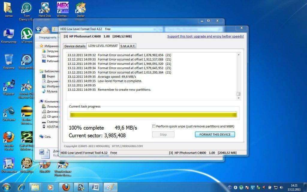 Если вы поняли, что проблема заключается в самом накопителе, то можно попробовать установить специальную программу, которая в некоторых случаях может восстановить работу карты. Она называется HDD Low Level Format Tool. Для того чтобы всё получилось, необходимо скачать приложение с официального сайта производителя и верно установить на компьютер. Существуют и другие подобные программы.