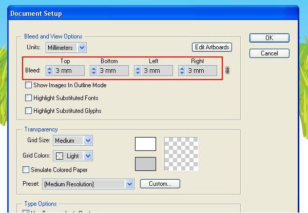 Если работа создается для тиражирования и содержит фон, подходящий к самым краям монтажного стола, то желательно чуть продлить фон за границы задуманного: как правило, 3 мм по периметру. Иначе иллюстрацию могут попросту обрезать, поля для графических изображений в модульных сетках присутствуют далеко не всегда. Никакой огород с линейками и направляющими при этом городить не нужно, Illustrator дает возможность легко сделать вылеты за линии реза и сохранить дообрезной формат, записав PDF с соответствующей настройкой.