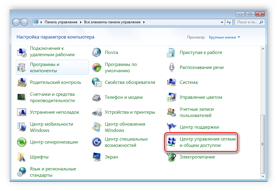 - Посещение пункта с названием «Центр управления сетями и общим доступом».