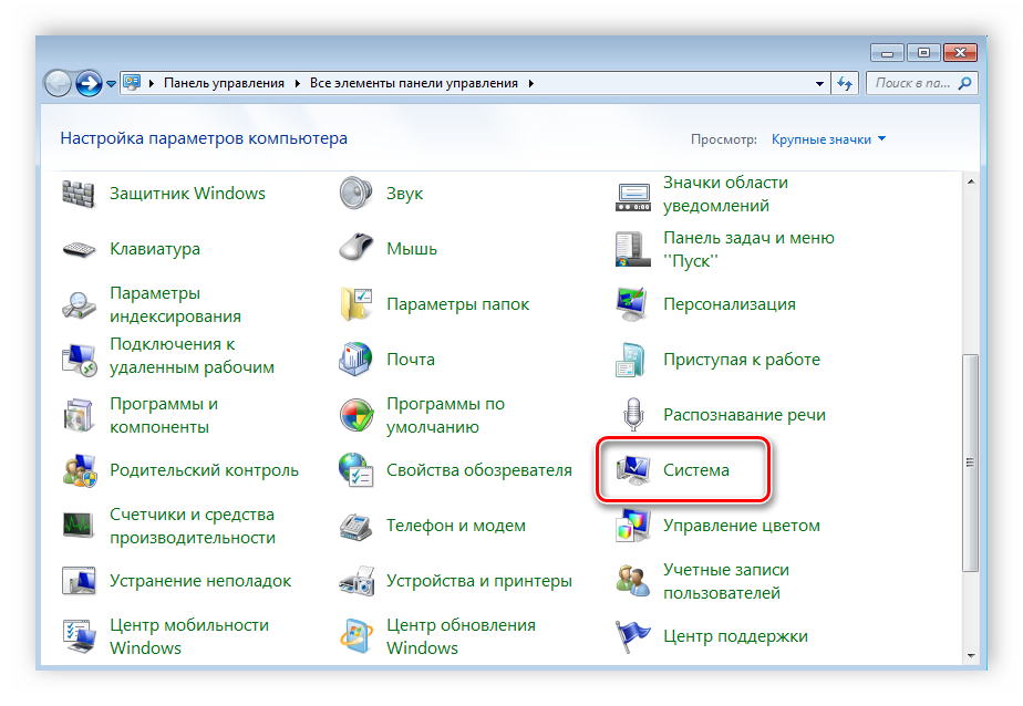 - Снова перейдите в «Пуск», «Панель управления» и выберите «Система».