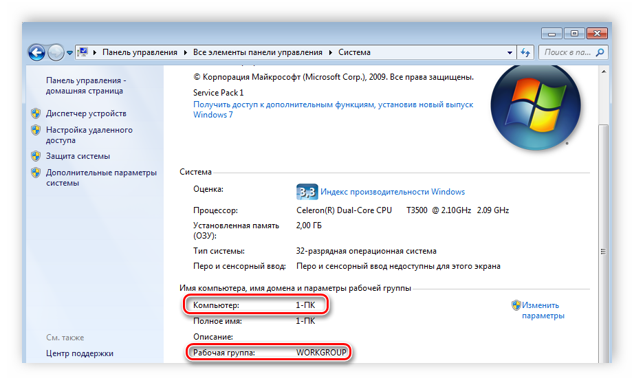 Здесь нужно обратить внимание на строки «Компьютер» и «Рабочая группа». Первое название у каждого участника должно быть разное, а второе совпадать.