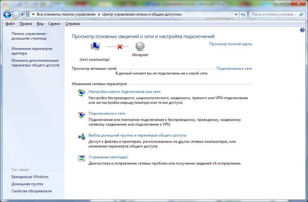 - Войти в панель управления на ПК и перейти в раздел управления интернет соединениями;