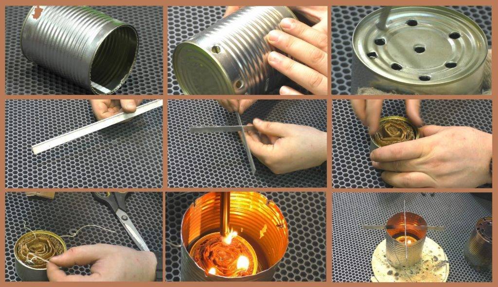 Процесс изготовления обогревателя для палатки из консервной банки