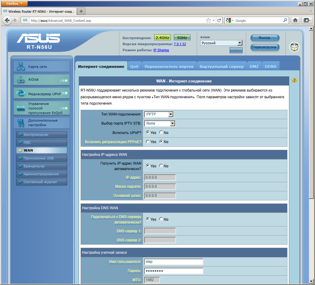 Для удобства пользователей в главном меню есть пункт быстрой настройки подключения — QIS (Quick Internet Setup). Asus RT N56U настройка значительно облегчается с использованием данной возможности. После запуска, QIS начнет поиск и определение типа подключения (Dynamic IP, Static IP, PPPoE и другие). После автоматического выбора типа подключения будет предложено ввести в отобразившуюся форму данные, предоставленные провайдером, а также некоторые дополнительные настройки.