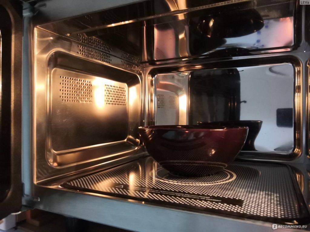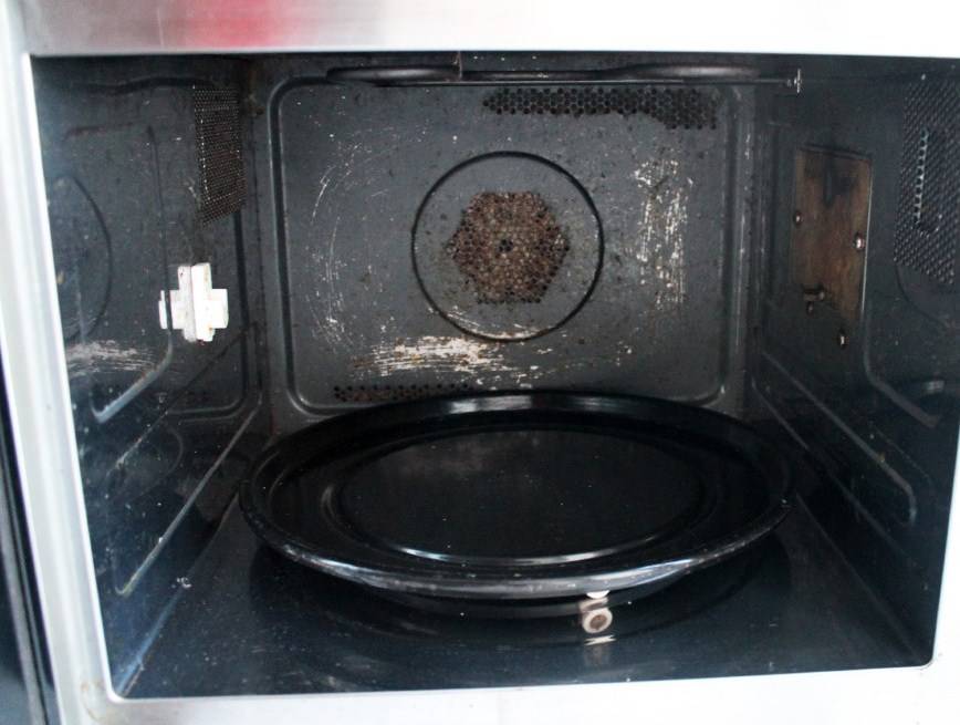 Что касается обычных микроволновых печек, то у них в дне есть впадины и переходы, в которых скапливается грязь, а из-за диска ежедневно мыть эти места сложно. Также во время вращения посуда трется о покрытие камеры, и если это эмаль, защитное покрытие неизбежно стирается, а на нержавейке могут оставаться царапины. Если брызги жира во время вращения пищи попадают на слюдяную пластину, она преждевременно прогорает. Конечно, технику можно покрасить