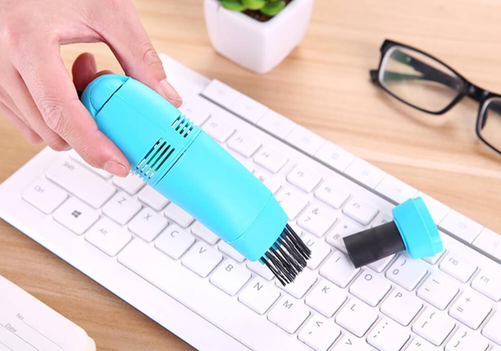 И последнее, это маленький пылесос для компьютера. Аппарат представляет собой маленький прибор, помещающийся в ладони, который позволяет вычистить клавиатуру от мелкого мусора и шерсти, при разборе можно пропылесосить некоторые детали. Обладает совсем небольшой мощность всасывания 9 Вт — 12 Вт. Некоторые из моделей снабжены пылесборником. 5 причин обладать данным аппаратом для уборки: