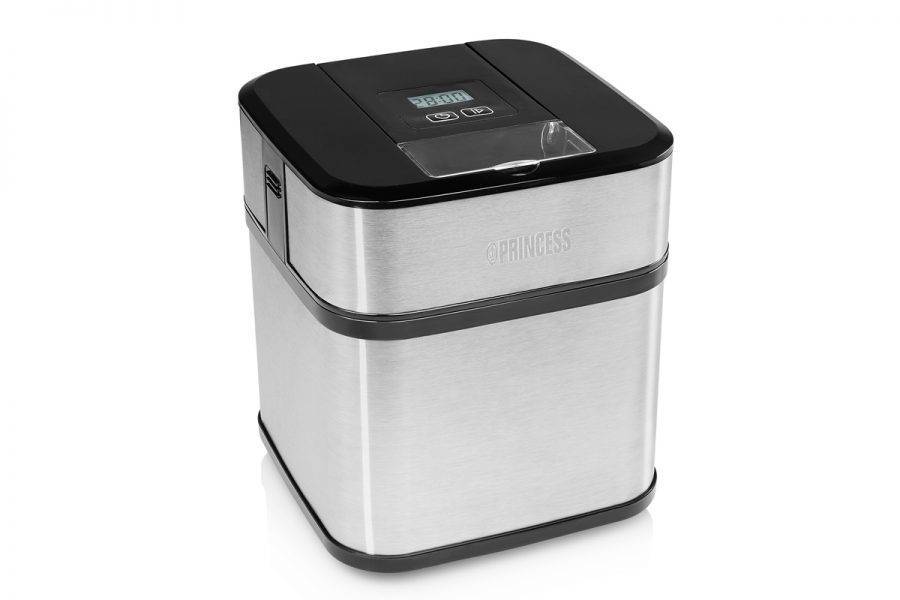 Компактная и мощная мороженица Princess изготовлена из нержавеющей стали и имеет чашу объемом 1,5 литра. Помимо таймера и съемной чаши, на лицевой панели аппарата расположен LCD-дисплей, отображающий время готовки. Присутствует встроенная защита от перегрева.