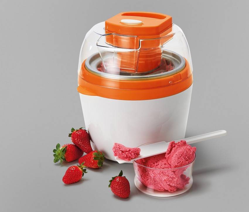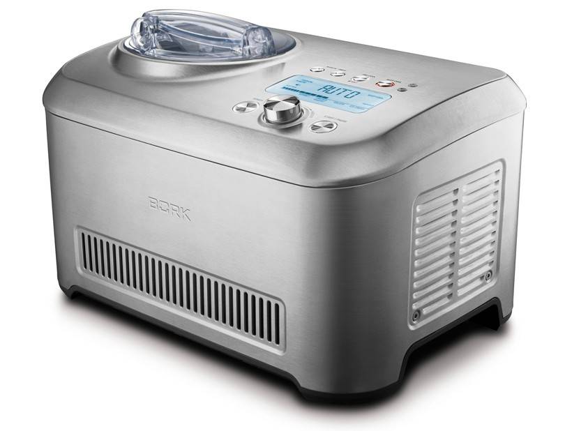 Изделие представляет собой универсальную продукцию, которая подойдет для приготовления не только мороженого, но и других охлажденных продуктов – фруктового льда, сорбета, замороженного йогурта и так далее. Конструкция оборудована жидкокристаллическим информативным дисплеем с подсветкой. Также имеется таймер максимум до 40 минут. У пластиковой крышки есть достаточно удобное отверстие, куда добавляют дополнительные ингредиенты. Чаша съемная, выполнена из нержавеющей стали, объем ее составляет 1,5 л. Перемешивающий венчик съемный, выполнен из пищевого пластика, мыть его весьма легко. У мороженицы имеется надежная защита от перегрева, которая срабатывает, когда температура двигателя достигает определенных пределов. Мощность мотора составляет 12 Вт. Само устройство полуавтоматическое. Чашу перед приготовлением продукта необходимо продержать в морозилке порядка 16-18 часов. Корпус оборудования выполнен из нержавеющей стали, стойкой к возникновению повреждений, поэтому данная конструкция будет продолжительное время сохранять свой первоначальный внешний вид. Управление здесь полностью электронное, габаритные размеры составляют 201х201х235 мм – занимает на кухне не слишком много свободного пространства. Изготавливается продукция в Китае под руководством германских инженеров.