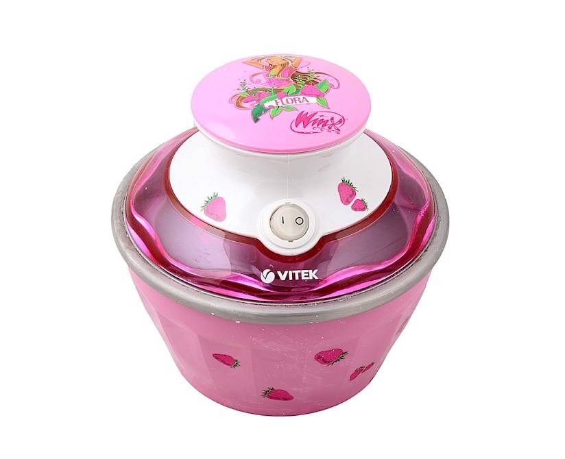 Модель Vitek WX-1351 раскрашена в стиле «Школы волшебниц» Winx и будет хорошим подарком для девочки. Небольшой аппарат способен за 15 минут приготовить 300 г мороженого.