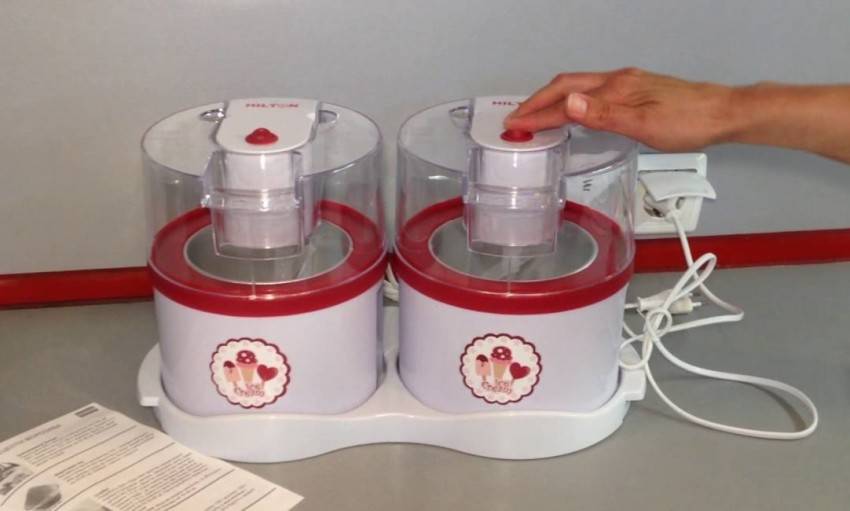 Приготовить сразу две порции лакомства (до 500 г каждая) может машина Clatronic ICM 3650. В комплект входят две кружки, устанавливаемые по сторонам машины. Пара венчиков одновременно замешивают десерт.