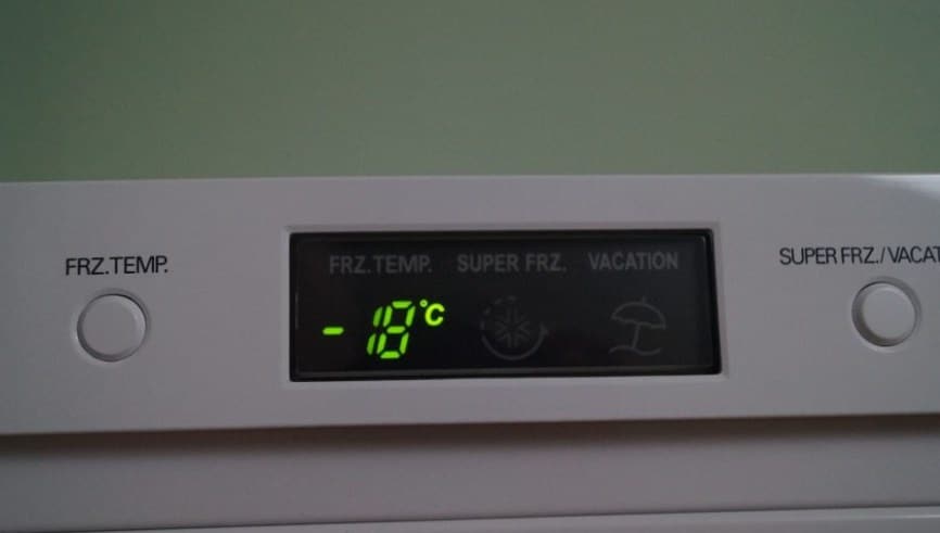 Неправильно выбранный температурный режим. Механические камеры работают на отметке 2,5–3,5 — это идеальные условия для бытовой заморозки. При выборе максимальной черточки на регуляторе вы получите постоянную работу камеры, а в некоторых шкафах дополнительно включится «суперзаморозка». Электронные модели оптимально работают при температуре в −18−19 градусов. Летом не стоит понижать эти показатели, иначе агрегат может не справиться с работой в таких условиях.