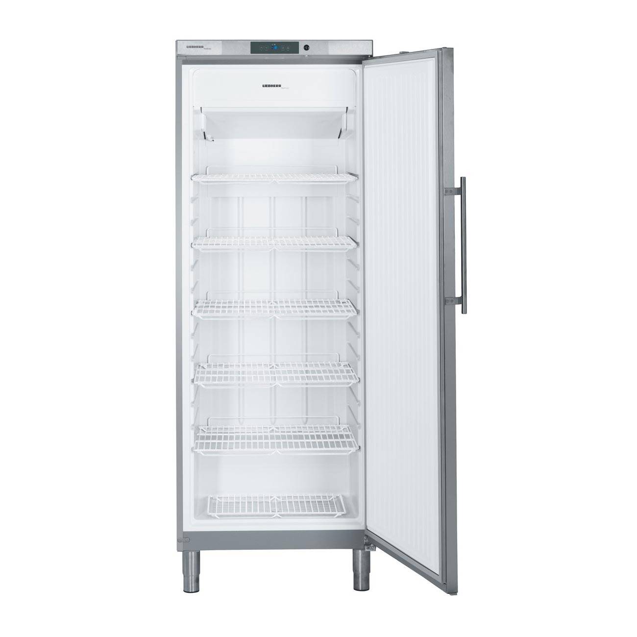 Liebherr GT 4932-20. Возглавляет рейтинг надежности и спроса. Производитель — Австрия. Объем — 450 литров. Модель с суперзаморозкой. Автоматический режим. Мощность замораживания в сутки — 31 кг. Автоматическая регулировка температуры.