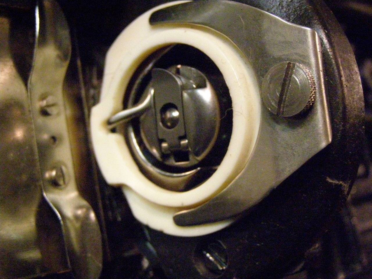 — После разборки неправильно собран натяжитель верхней нити. — Неправильная заправка ниток. — Плохое качество ниток. — Номер ниток не соответствует номеру иглы. — Ослабла пружина замочка шпульного колпачка. Внутри шпульного колпачка можно найти совсем маленький винтик, и если его выкрутить, механизм замка можно снять и обнаружить длинную пружинку. Попробуйте растянуть слегка эту пружинку, но лучше купить новый шпульный колпачок. — На пути прохождения нитки до иглы имеются зазубрины, заусеницы. Проследите внимательно путь движения нитки и после обнаружения зазубрин удалите их мелким надфилем. В старых машинах типа Подольск, на стержне натяжителя могут находиться пропилы от ниток. Разберите натяжитель и осмотрите стержень, если имеются такие пропилы, удалите их шлифовальной шкуркой.