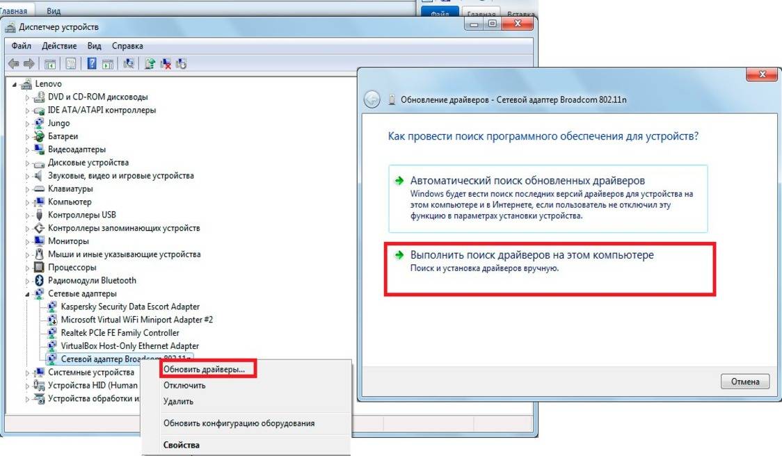 Нажимаем на “Выполнить поиск драйверов на этом компьютере”.